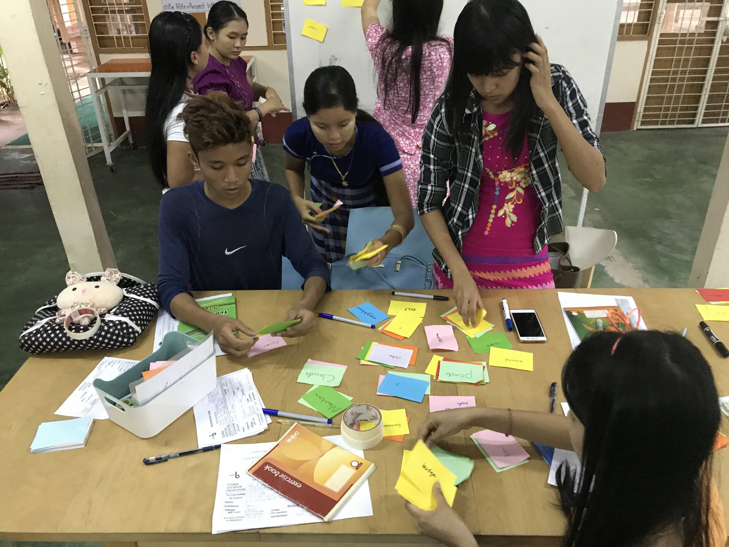 In a co-creation process, we bring community members into the creative process by using activities and materials to draw out stories of their personal experiences and expressions of their ideal solutions. In the 21st Century Skills Program, we worked with teachers, students, trainers and school directors from Mawlamyine University, Mon National Education Committee (MNEC), Adventist Development and Relief Agency, the English Access Microscholarship Program, National League for Democracy Education Network and community learning centers in Myanmar. Over the course of six-months, we worked alongside teachers and students to design and test tools, activities and processes for how best to integrate 21st Century Skills into classrooms where adolescents (ages 10-20 years old) currently learn. The outputs of this process have been compiled into A Guide to Becoming a 21st Century Teacher.